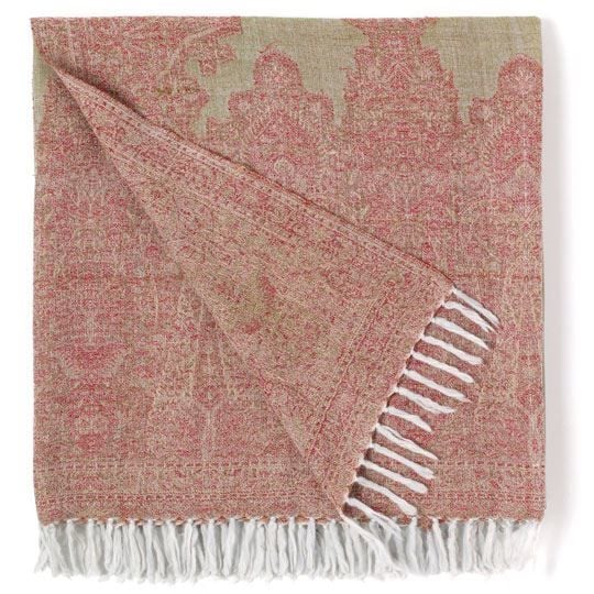 Pastel yeşilve pembe renklerinde örtü. %100 yün.